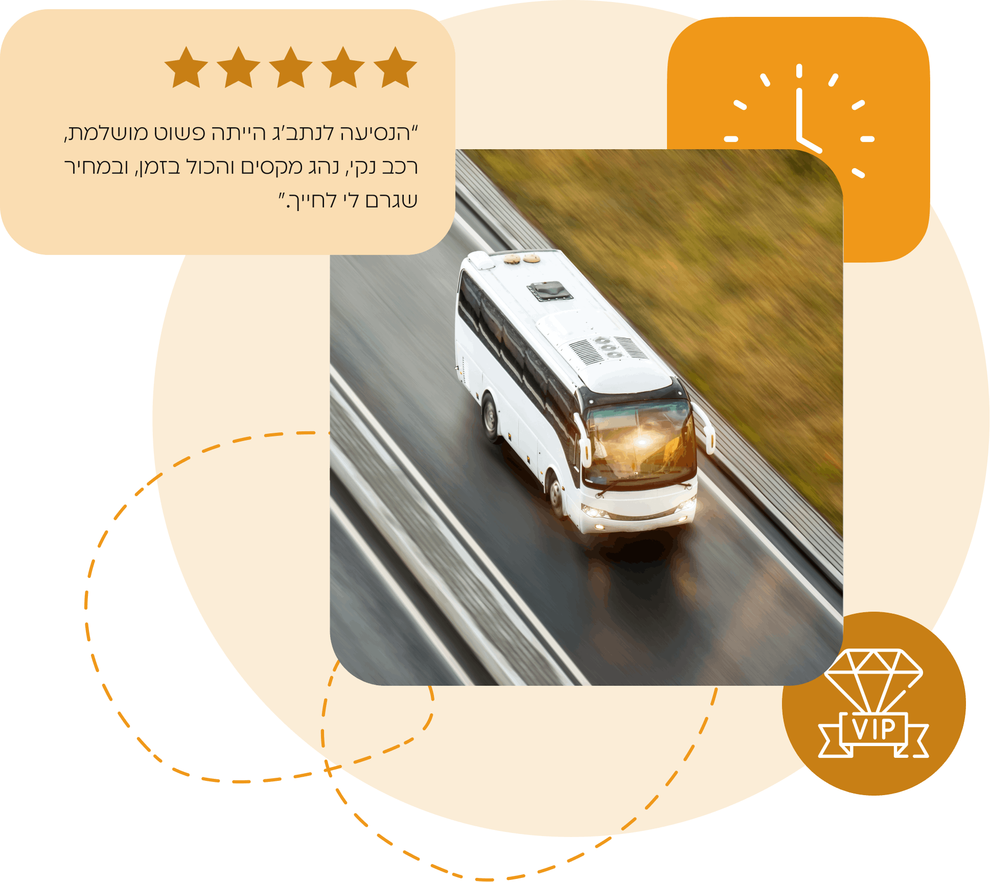 אתם מזמינים חוויית נסיעה שלמה עם תיאום פשוט, שירות אישי והתחייבות להגעה בזמן.
