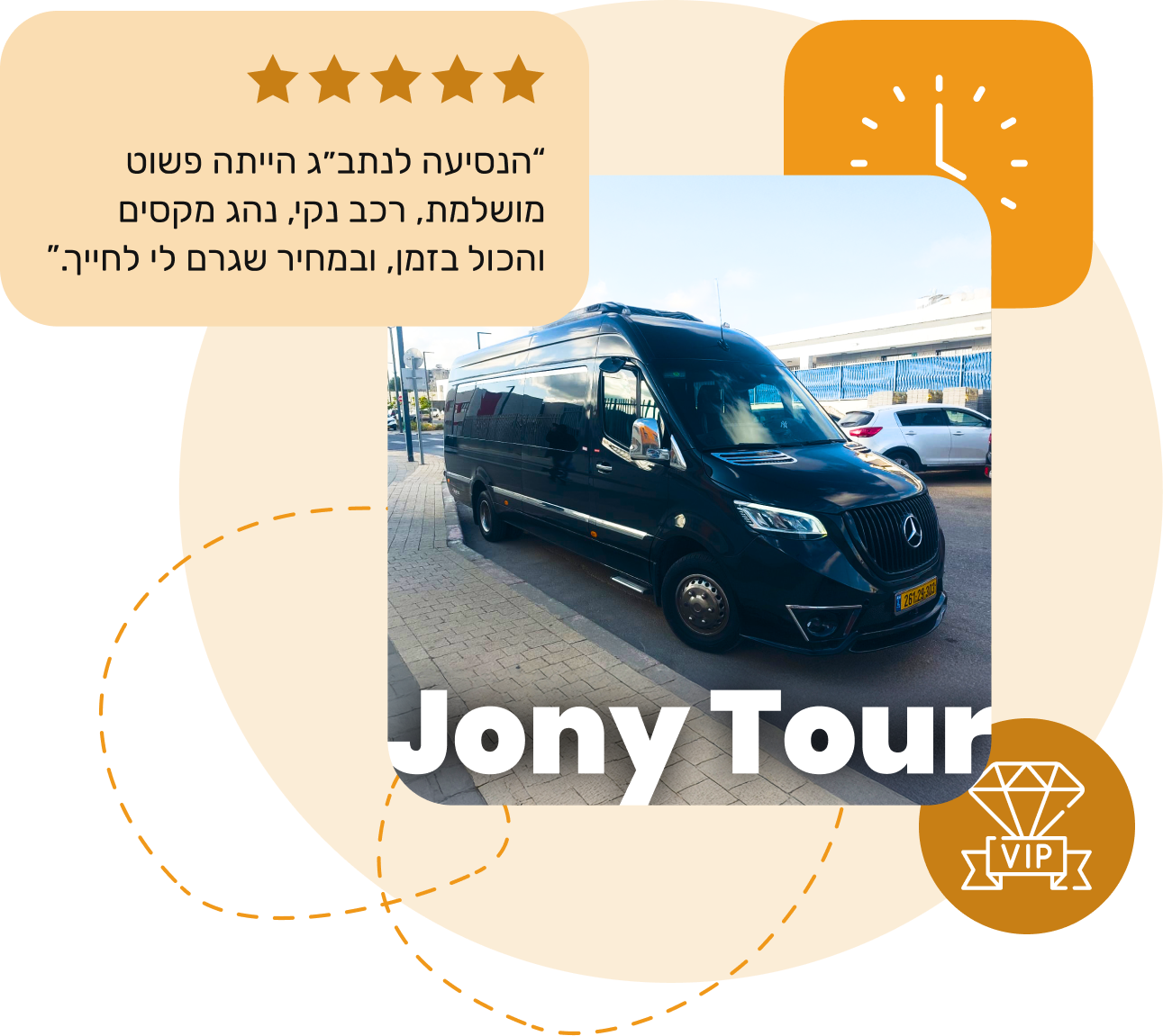 “אני מפיקה אירועים, ועבדתי עם עשרות חברות הסעות. אף אחת לא הייתה מדויקת, רגועה ושירותית כמו גוני תור. הם מתאמים הכול מראש, תמיד זמינים, ותמיד עם חיוך.”